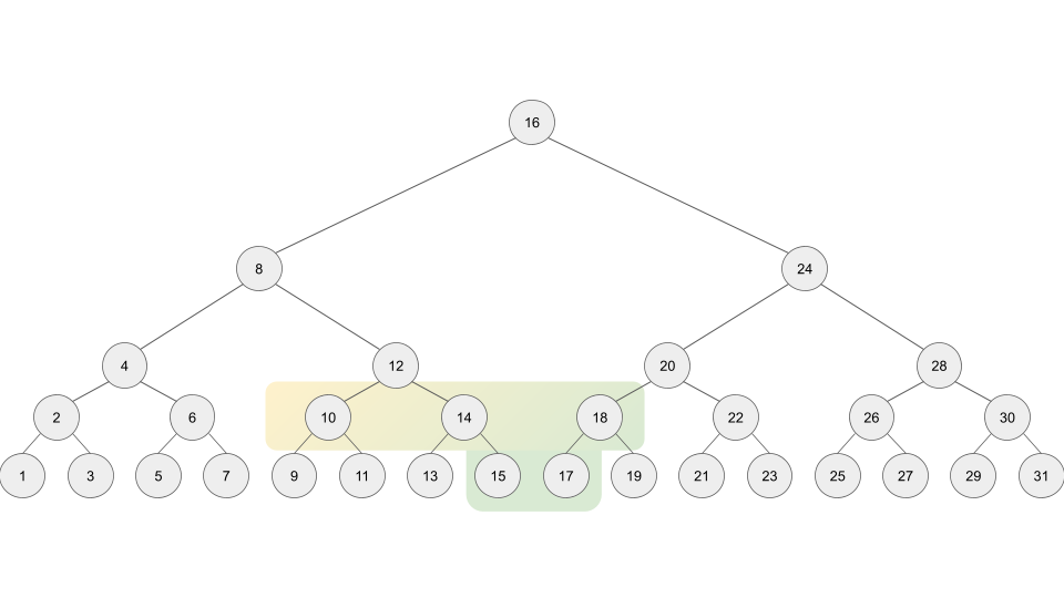 But at the third read we start to see a difference as we need to visit the left child of 18.