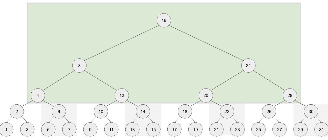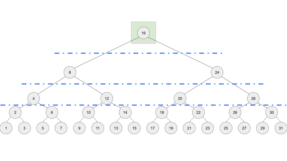 This is easiest understood with some pictures, so here's a complete binary search tree of height 5: