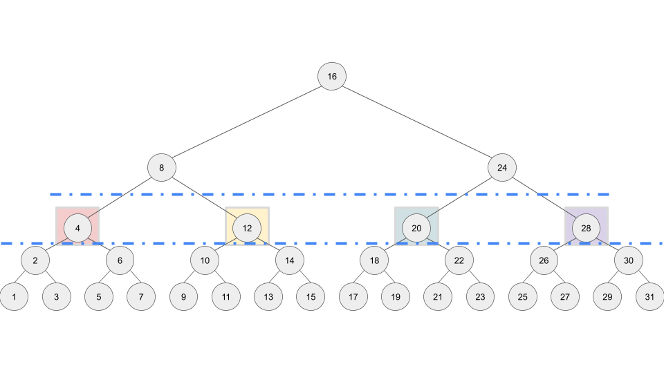 For any tree whose size isn't of the form 22^n-1 you'll end up with some of your fetches reading incomplete trees and thus wasting some of your memory bandwidth. So too with other sizes, for fetches of 7 the tree must be of size 23*2^n-1, 15 they must be 24*2^n-1 etc. In addition to that, the fetch sizes are a bit awkward being of the form 2X-1: as an industry we tend to manufacture things using powers of 2 or multiples of 10, meaning you're practically guaranteed to not be right-fitWhich is one of the things cited by "Optimal Memory Layout for Binary Search" as leading to suboptimal performance in main memory..