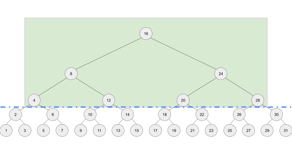 Understanding this well was one of the main goals of this experiment. It's laid out in a few papers"Cache Oblivious Search Trees via Binary Trees of Small Height" which this is mostly based on, and "Cache Oblivious Streaming B Trees", but it can be a little hard to fit in your head because it is defined differently from other inductive search trees. It also relies on a couple of high level concepts which I'll explain below; feel free to skip over those sections if they are basic to you.