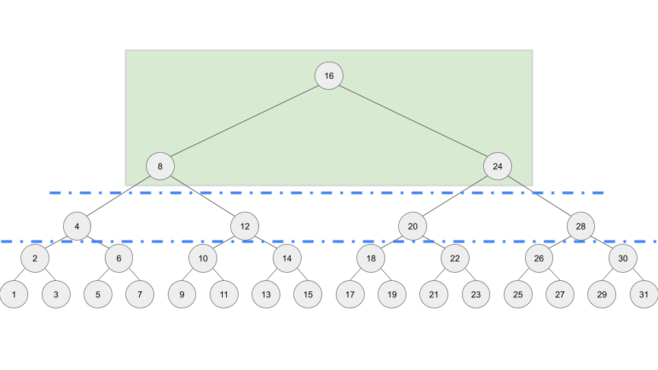 in order to accomplish this we divide it in half, and lay out the top half in vEB order...